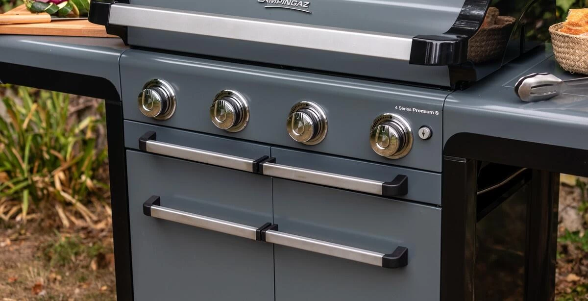 Cook up a feast for family and friends with the 4 Series Premium S gas barbecue. Featuring 4 efficient and high-performance stainless steel burners with our efficient Blue Flame Power System that ensures significantly less flare ups by design and keeps your food nice and juicy. Together with a large, enamelled cooking surface this barbecue is perfect for preparing a wide range of al fresco meals. The powerful side burner can be used to prepare accompaniments to the grilled food, cooking up a full feast with ease. The Campingaz Culinary Modular System provides keen grillers with even greater cooking versatility. Cleaning is quick and hassle-free thanks to the Campingaz InstaClean Aqua System. Electric ignition offers convenient lighting with batteries are included. Supports up to 13kg gas bottles within a partly enclosed trolley with doors. Swivel castors with brakes offer convenient mobility and manoeuvrability. Impaired storage solution with Campingaz Push2Fold folding side tables. Integrated utensil hooks for easy access and convenient storage of grilling accessories. 5 year warranty on the Campingaz Blue Flame Power System and cooking surfaces.