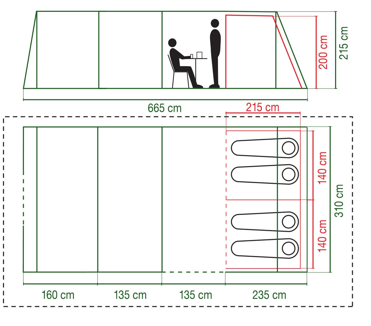 Fully sewn-in groundsheet – protects the tent interior from bugs and water, for an extra level of comfort