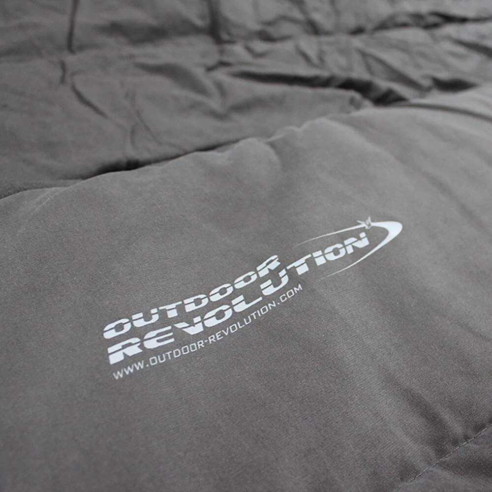 The warmest, biggest and most luxurious single sleeping bag in the Outdoor Revolution sleeping range. The outer fabric has the most gorgeous moleskin feel to it, and the lining is 100% cotton rich flannel for a super soft and warm rich feel. We have included the full-size cotton flannel pillowcase that neatly toggles into the cowl hood, so it does not go missing when being packed away. This bag has been designed specifically for camping across all 3 seasons and is a proper grown up bag! The 2-way nylon zippers allow extra air and ventilation around the foot of the bag if you get too warm, and a double slider on the side zip gives you the choice of extra air flow or not. Not wanting to get out of this bag in the morning is its only drawback! Pack Size 56 x 47 x 19cm • Filling: 2x200g/m2 double layer 30% single hole siliconized hollow fibre / 70% polyester fill